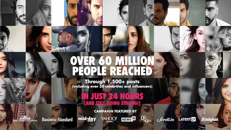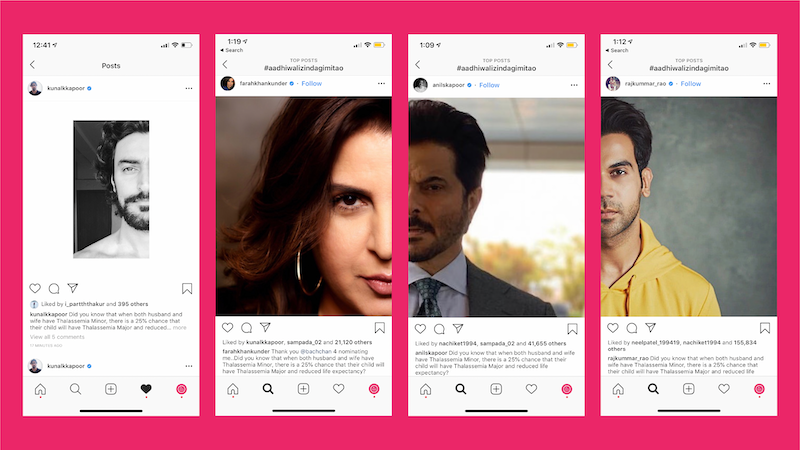 We launched the #AadhiwaliZindagiMitao campaign with a challenge where a person had to upload a picture cropped to show half of his face and tag three of his friends to do the same. The simple visual of half a face was easy to connect with #AadhiwaliZindagiMitao yet different enough to break clutter. What started off with Kunal posting on Instagram soon saw a massive response with over 50 celebrities and influencers jumping in. Some of the key influencers were Sonakshi Sinha, Huma Quereshi, Hrithik Roshan, Anil Kapoor, Abhishek Bachchan, Ayushman Khurana, Rajkumar Rao, Arjun Kapoor and many more.